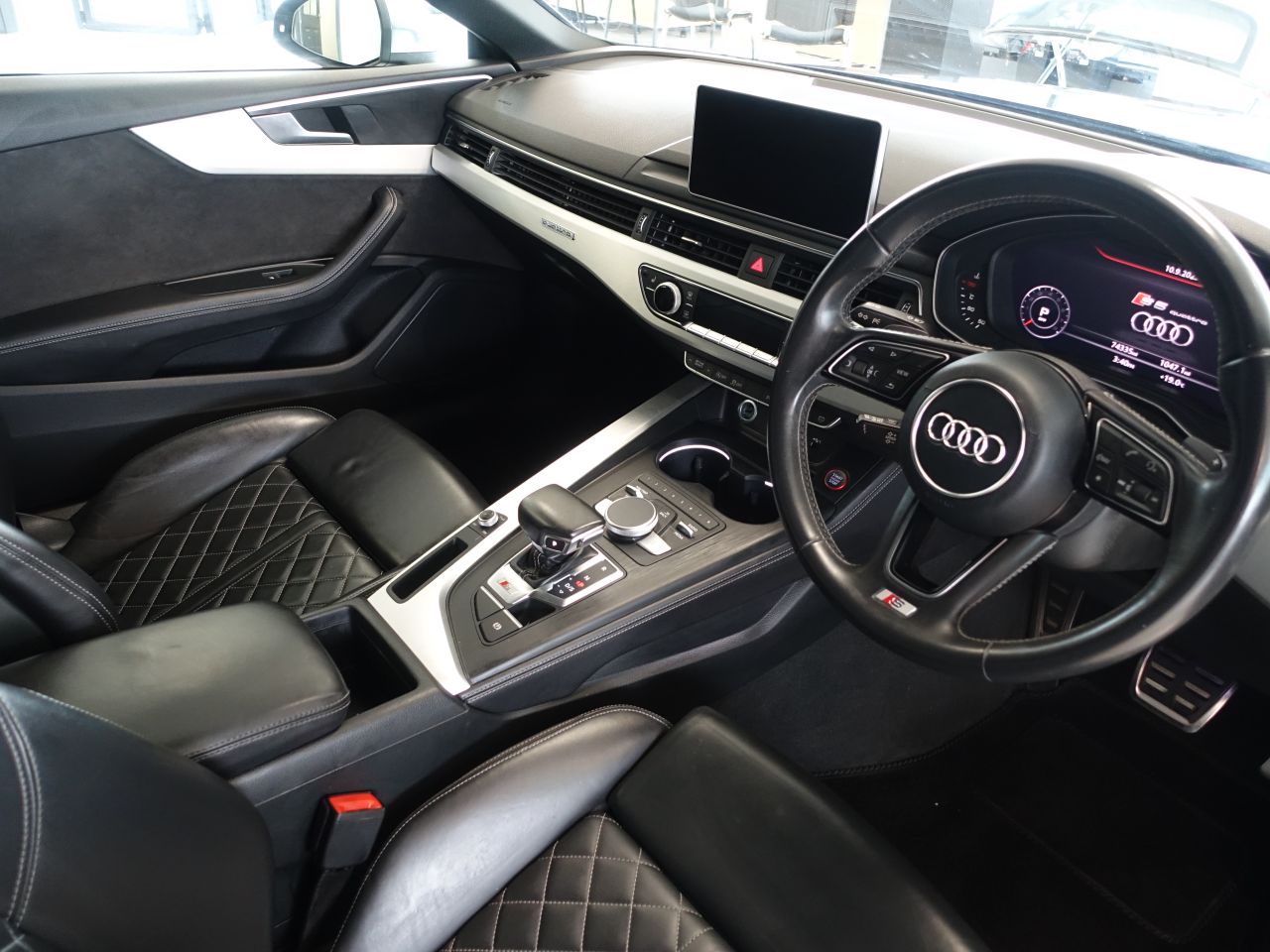 Interior Features: 4-Way Electric Lumbar Support,Audi Virtual Cockpit,Auto-Dimming Rear-View Mirror,Cloth Headlining in Black,Comfort and Sound Package,Contrast Stitching on Seats - Steering Wheel and Gear Lever Gaiter,Deluxe 3-Zone Electronic Climate Control,Electric Boot Lid Release,Electrically Adjustable Front Seats,Electrically Adjustable Front Seats with Memory Function for Drivers Side,Email - Calendar and Text Messages can be Displayed on your Vehicles MMI,Extended LED Interior Lighting Package - Multi-Coloured,Fixed Rear Seat Bench with Storage Tray in Seat,Flat-Bottomed 3-Spoke Leather High Multi-Function Steering Wheel,Front and Rear Floor Mats,Front Centre Armrest,Gear-lever Knob in Black Leather,Gear-lever with Diamond S Badge,Heated Front and Outer Rear Seats,Heated Front Seats,High Multi-function 3-Spoke Leather Steering Wheel with S Badging and Gear-Shift Paddles,Illuminated Door Sill Trims with S Logo,Inlays - Carbon Atlas,Inlays - Matt Brushed Aluminium,Keyless Go,Leather Door Armrests and Knee Pad,LED Interio