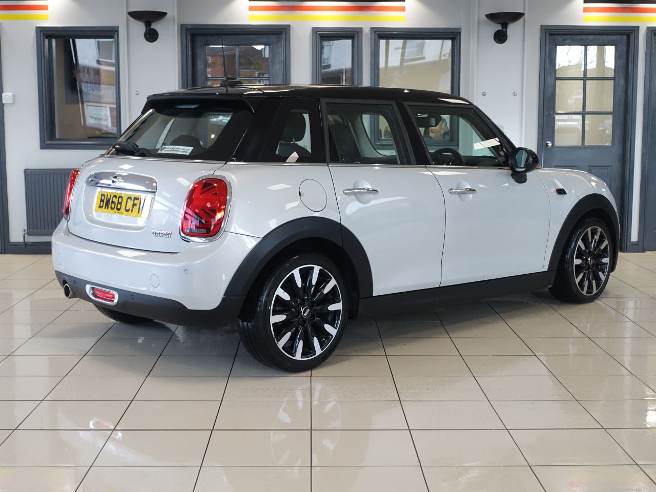 Exterior Features: 17in Alloy Wheels - Roulette Spoke,Chrome Line Exterior,Electric Windows,Exhaust Tailpipe - Left with Chrome Finisher,Fuel Filler Cap in Body Colour,Heated Rear Window,Heated Windscreen Washer Jets,Model Logo Cooper on Right of Tailgate,Rear Fog Light,Roof and Mirror Caps - Body-Colour,Side Scuttle Panels with Integrated Indicators,Sun-Heat Protection Glass,White Direction Indicators Lights