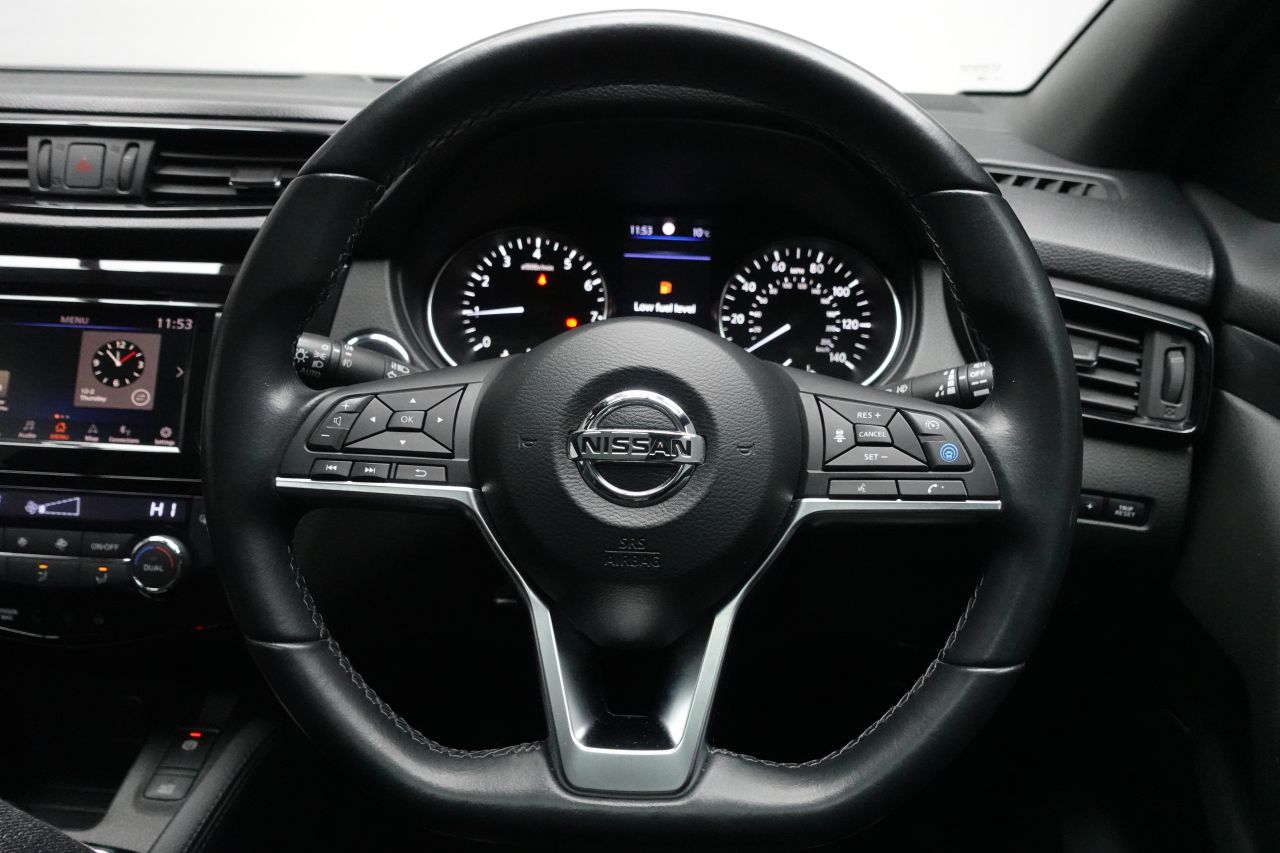 Safety Features: Adaptive Cruise Control and Speed Limiter,AutoHold Function - Stand Still Assist,Driver-Passenger-Side and Curtain Airbags,Electric Parking Brake,ESP ABS EBD and Brake Assist,Front and Rear Parking Sensors,Front and Rear Seat Belts with Load Limiter and Pretensioners,Front and Rear Seatbelt Warning,Height Adjustable Front Seatbelts,Hill Start Assist,Intelligent Around View Monitor,Intelligent Emergency Braking with Pedestrian Recognition,Intelligent Park Assist,ISOFIX Child Seat Anchoring Points - Rear x2,Lane Departure Warning,Nissan Anti Theft System Immobiliser,Nissan Intelligent Key,Outside Temperature Sensor,Passenger Airbag Deactivation System,ProPILOT,Rear View Camera,Rear Wiper with Reverse Link,Remote Central Locking with Superlocking,Safety Shield Plus,Selectable Steering - Normal or Sport,Thatcham Category 1 Alarm,TPMS - Tyre Pressure Monitoring System,Traffic Sign Recognition,Trip Computer