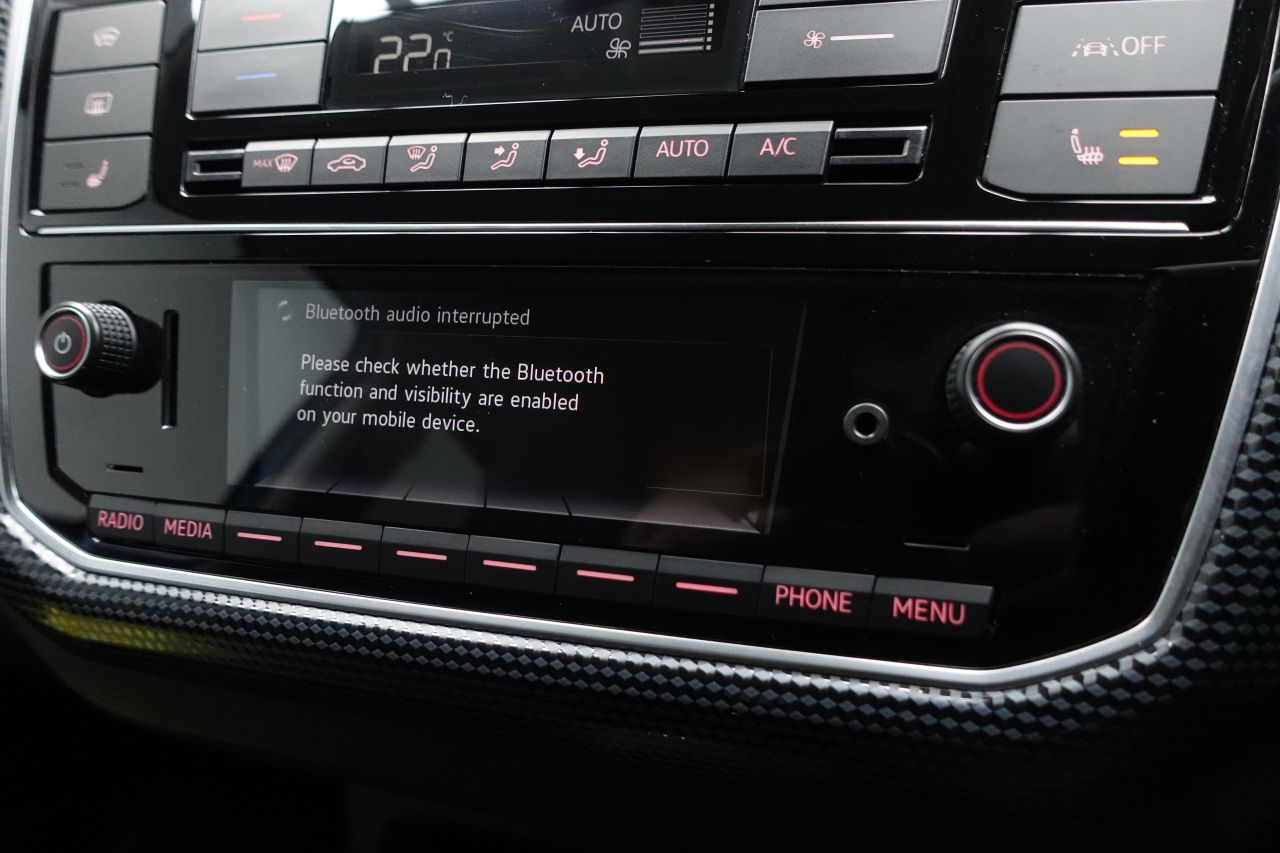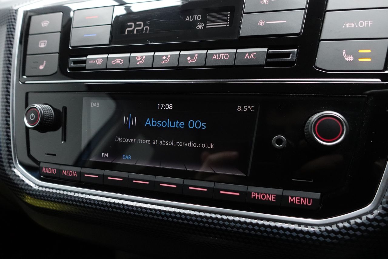 Interior Features: Air Conditioning - Manual,Backrest Release for Left Front Seat,Black Cube Upper Dashpad,Car-Net e-Remote Mobile Services App,Carpet Mats,Centre Console Including Cup Holders - Front x1 - Rear x1,Chrome Surrounds to the Air Vents - Radio Controls - Air Conditioning,Chrome Trim Around Light Switches and Air Conditioning System,Climate Control,Drivers Seat Height Adjustment,Drivers Sun Visor with Ticket Holder,e-up Interior Design Pack,Front Integrated Head Restraints,Front Passengers Sun Visor with Vanity Mirror,Glovebox,Headliner in Light Grey,Heated Front Seats,Height Adjustable Three-spoke Steering Wheel,High-Tone Horn,Leather Trimmed Gear Knob,Leather Trimmed Handbrake Lever,Luggage Compartment Cover,Luggage Compartment Light,Plastic Gearshift Knob-Handle,Rain Sensor,Rear Fog Light,Rear Head Restraints x 2 - Height-Adjustable,Split Folding Rear Backrests 60-40,Steering Wheel - Multifunction Leather Trimmed,Storage Compartment in Front Doors,Tool Kit,Variable Boot Floor and Luggage Net,Windscreen Wiper with