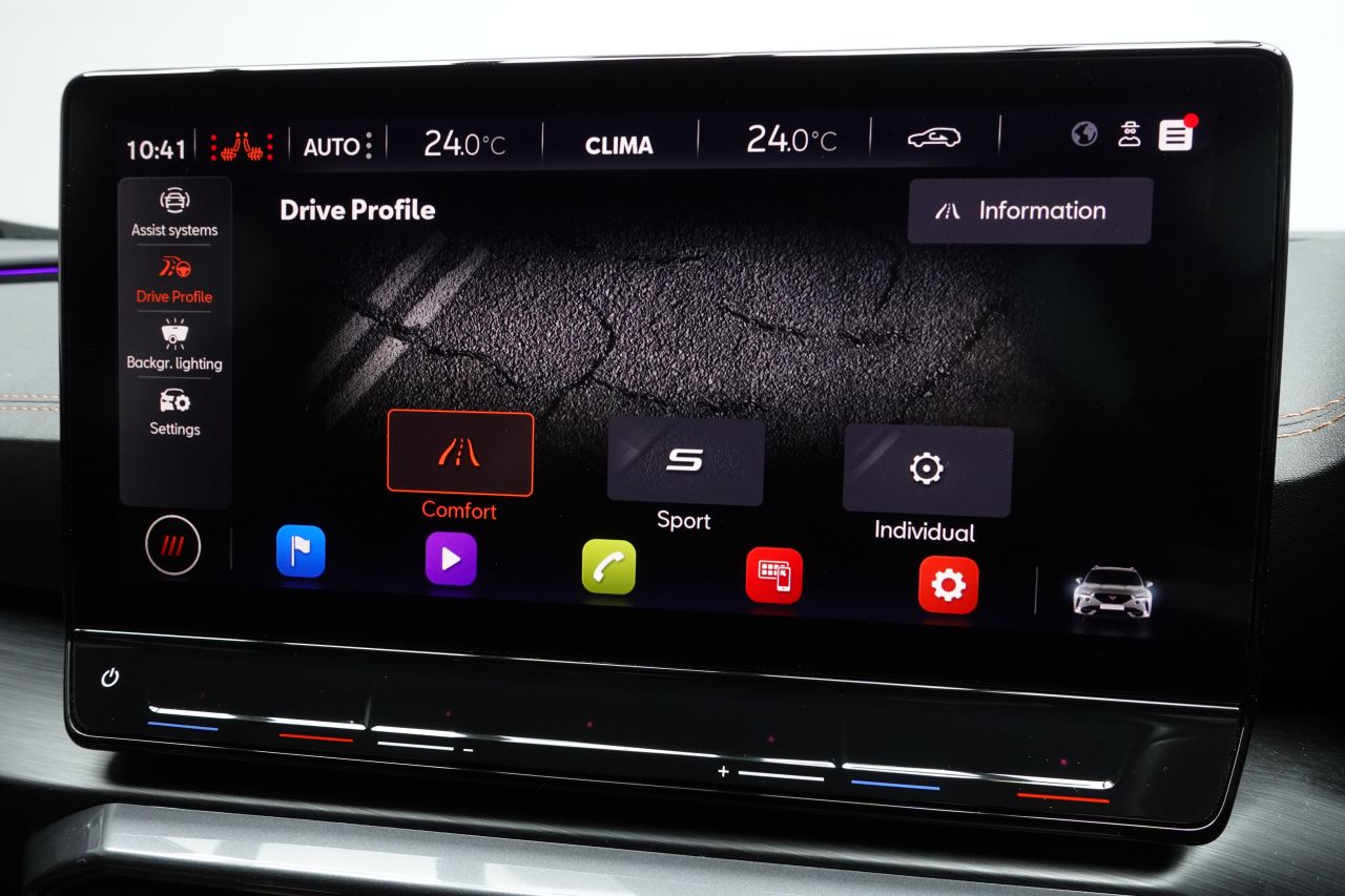Safety Features: ABS - Anti-Lock Braking System,Airbag on Driver and Front Passenger Side with Front Passenger Airbag Deactivation,Anti-Theft Alarm,CUPRA Connect - Safety - Service - Remote and Online,Digital Cockpit and Configurable Dashboard,Driver Alert System,Driving Profile Selection,Electronic Parking Brake,Forward Collision Warning with Automatic Braking,Front Side Curtain Airbag,ISOFIX,Kessy - Keyless Entry and Start,Lane Assist,Park Assist - including Front and Rear Sensors,Predictive Adaptive Cruise Control with Speed Limiter,Rear View Camera,Safety and Driving Pack M,Seat Belt Reminder,Tyre Pressure Monitoring System
